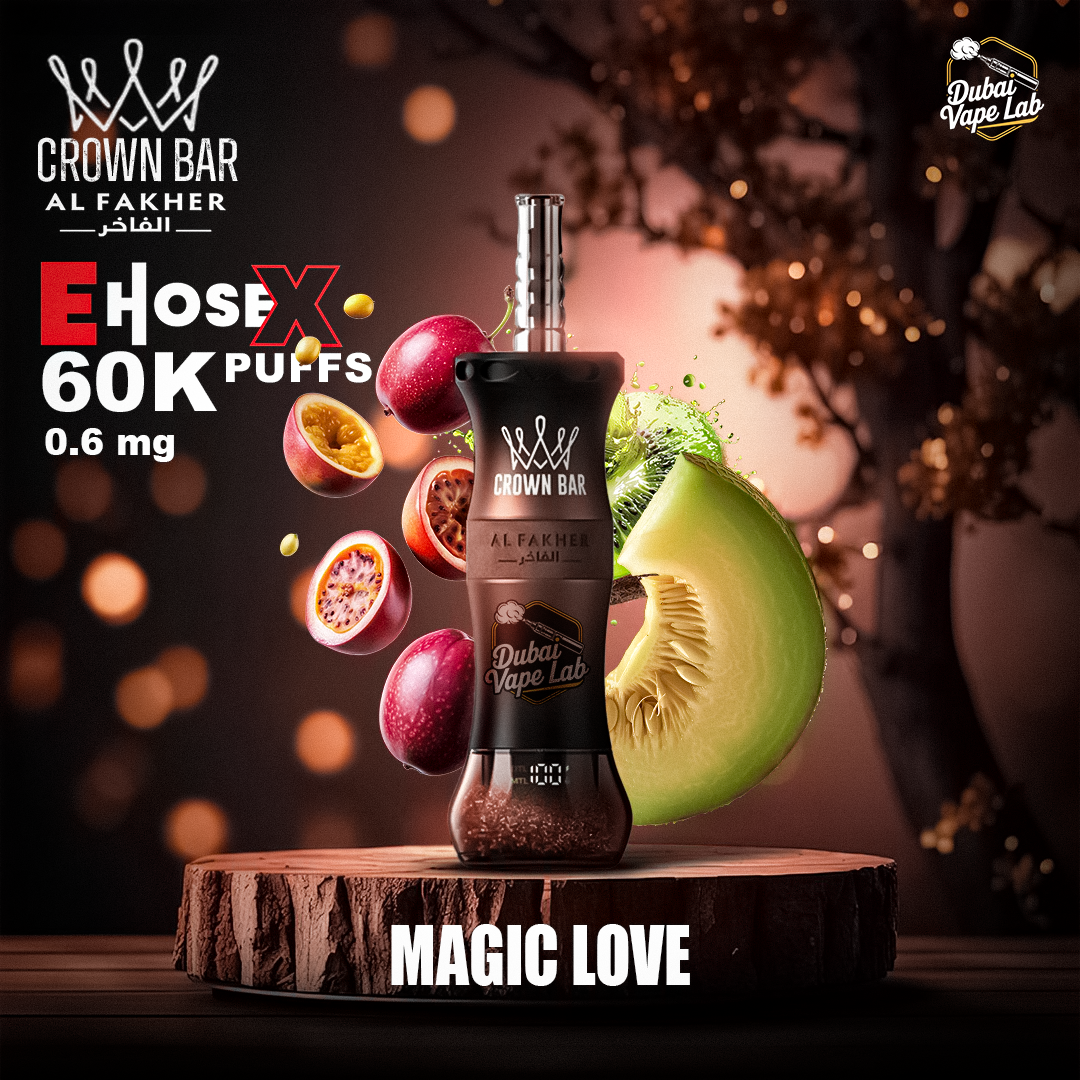 The Al Fakher Crown Bar E Hose X 60000 Puffs Hookah Disposable Vape brings the authentic essence of traditional hookah into a modern, high-capacity disposable format. Designed for extended enjoyment, this premium device delivers an impressive 60,000 puffs, making it one of the longest-lasting hookah-style disposable vapes available.